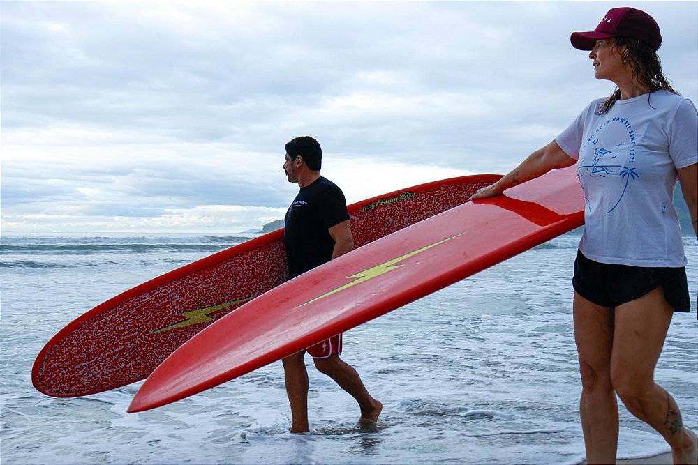 Além dos modelos autorais, a MOA desenvolve pranchas em colaboração com marcas e referências históricas do surf, mantendo fidelidade estética e performance clássica.